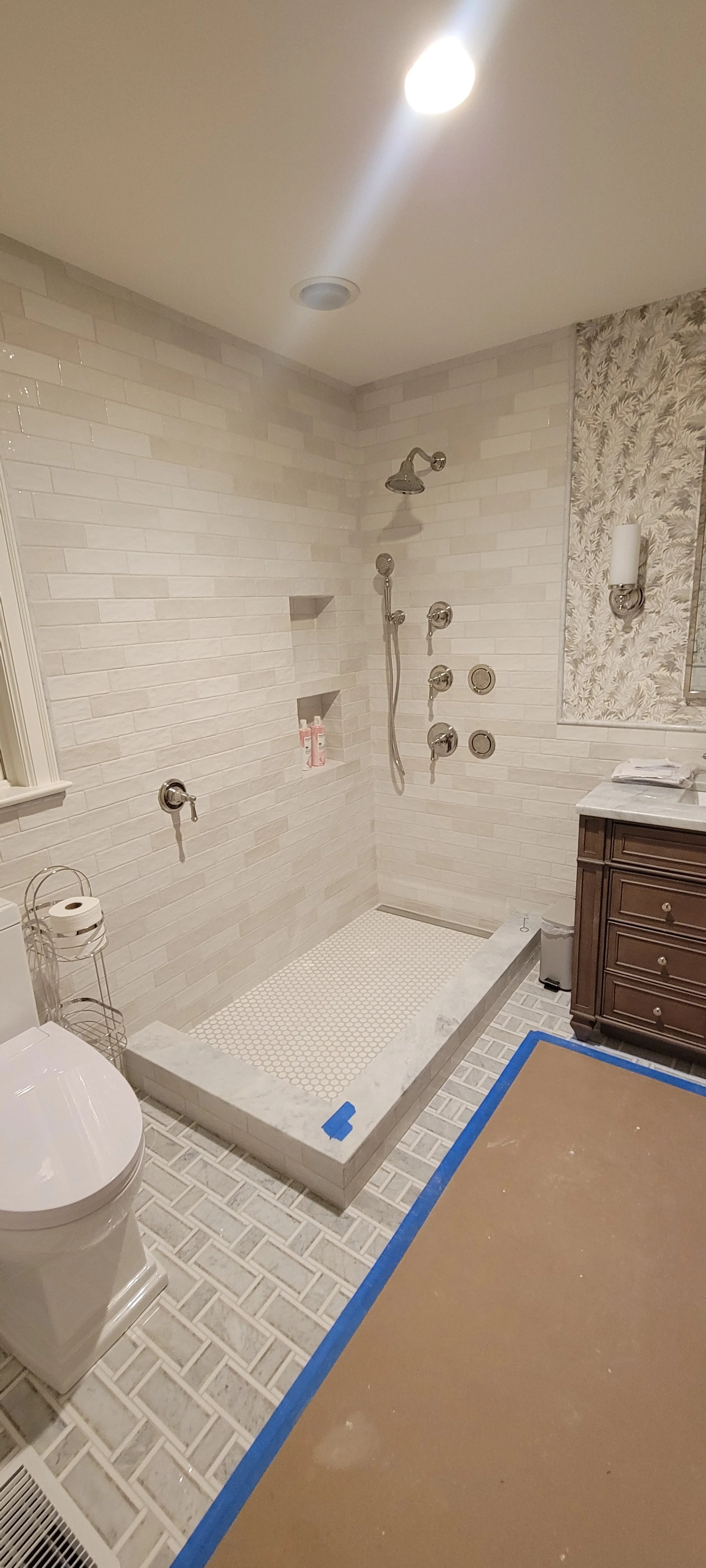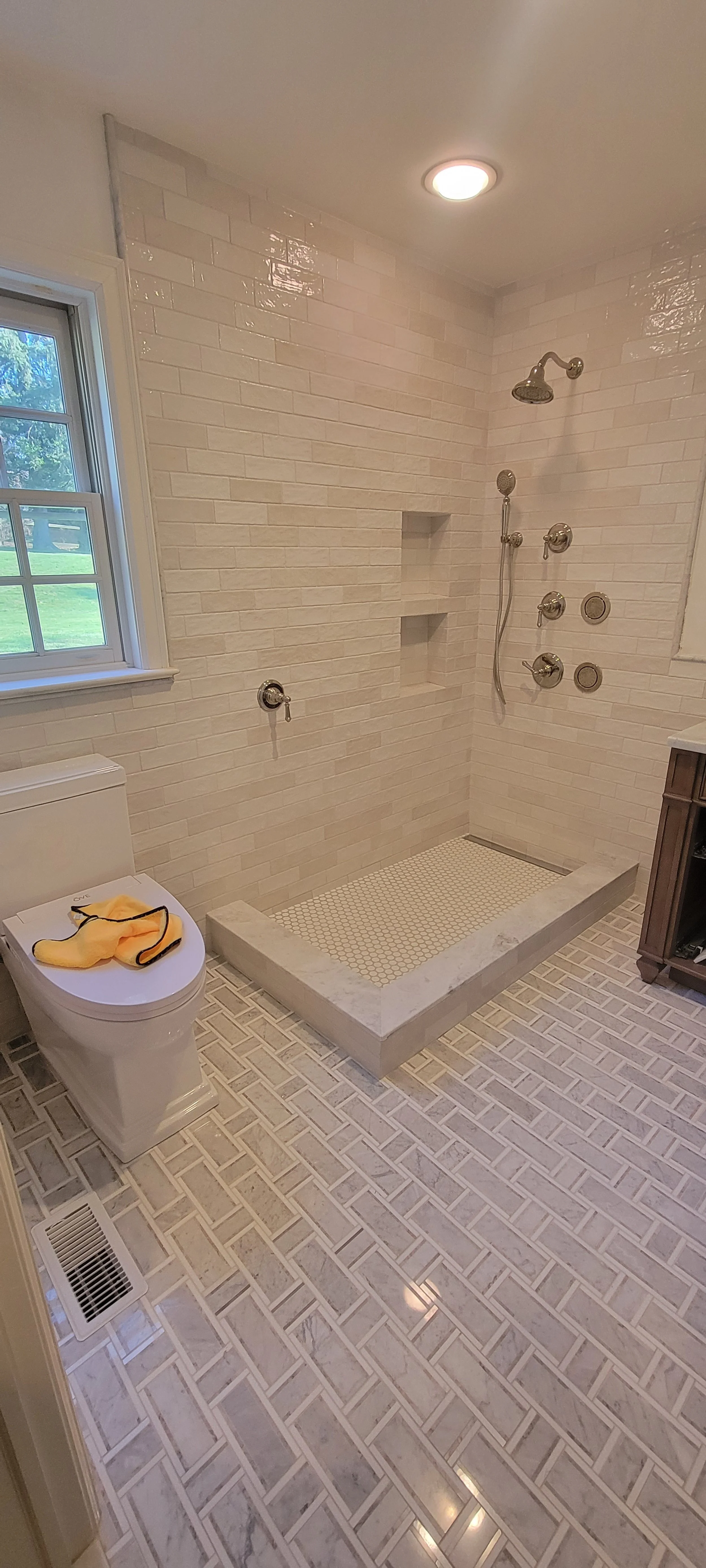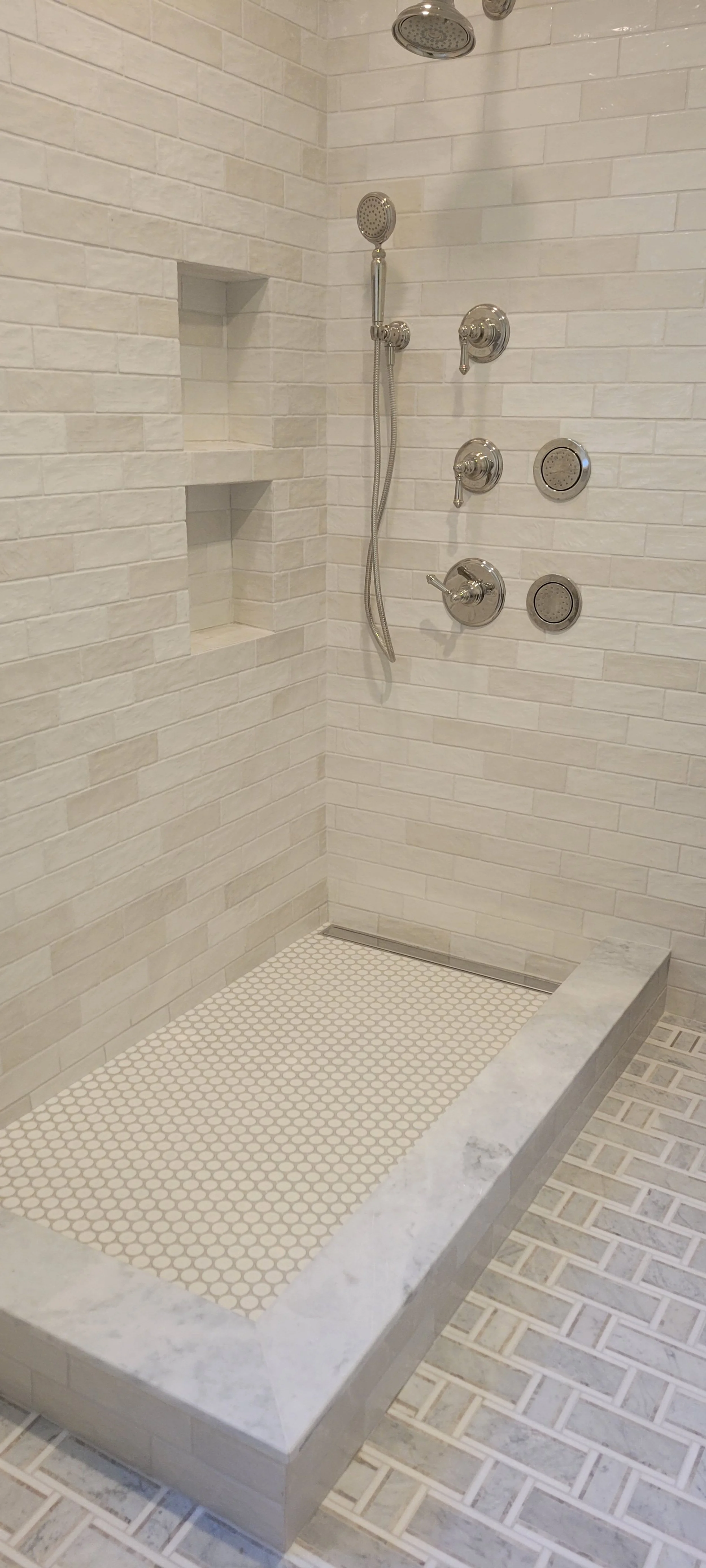 Off White Subway Tile & Marble Floors